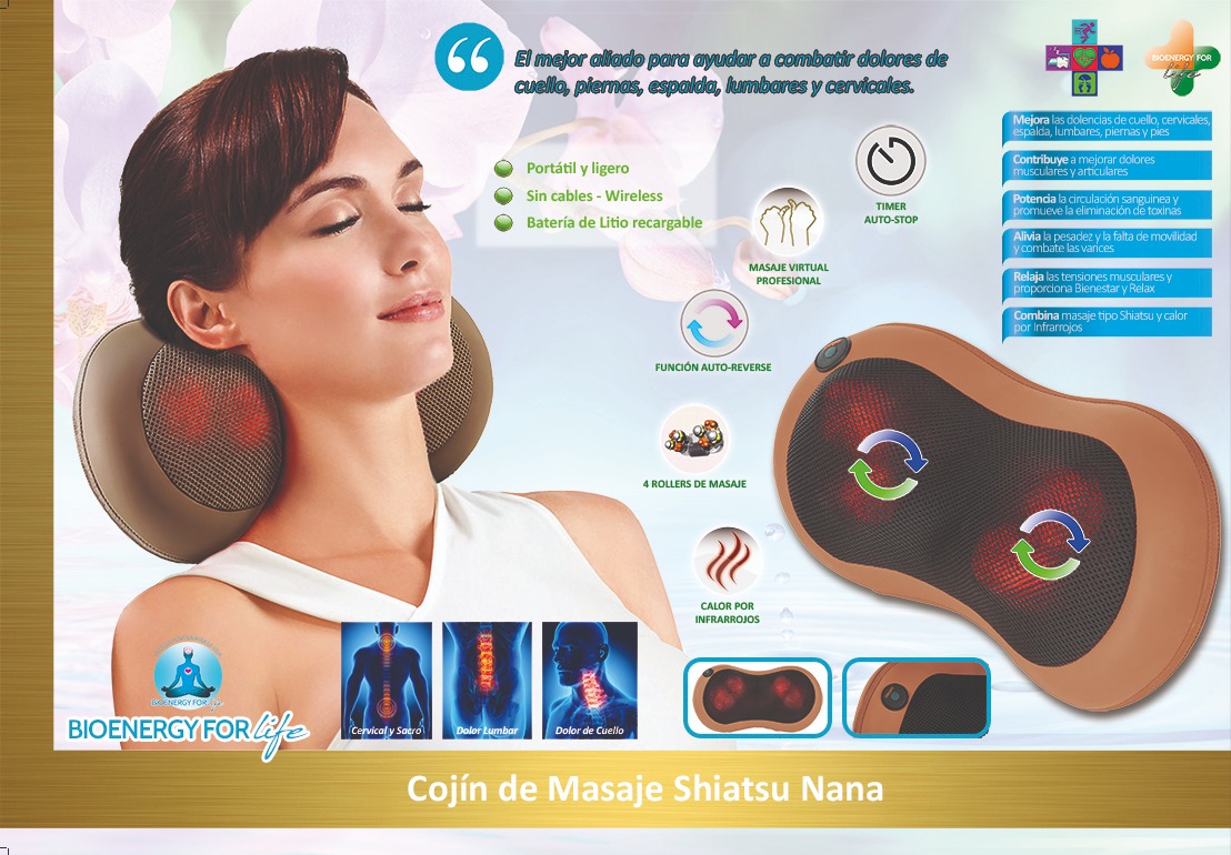 – combina 3 técnicas, masaje tipo shiatsu, calor e infrarrojos